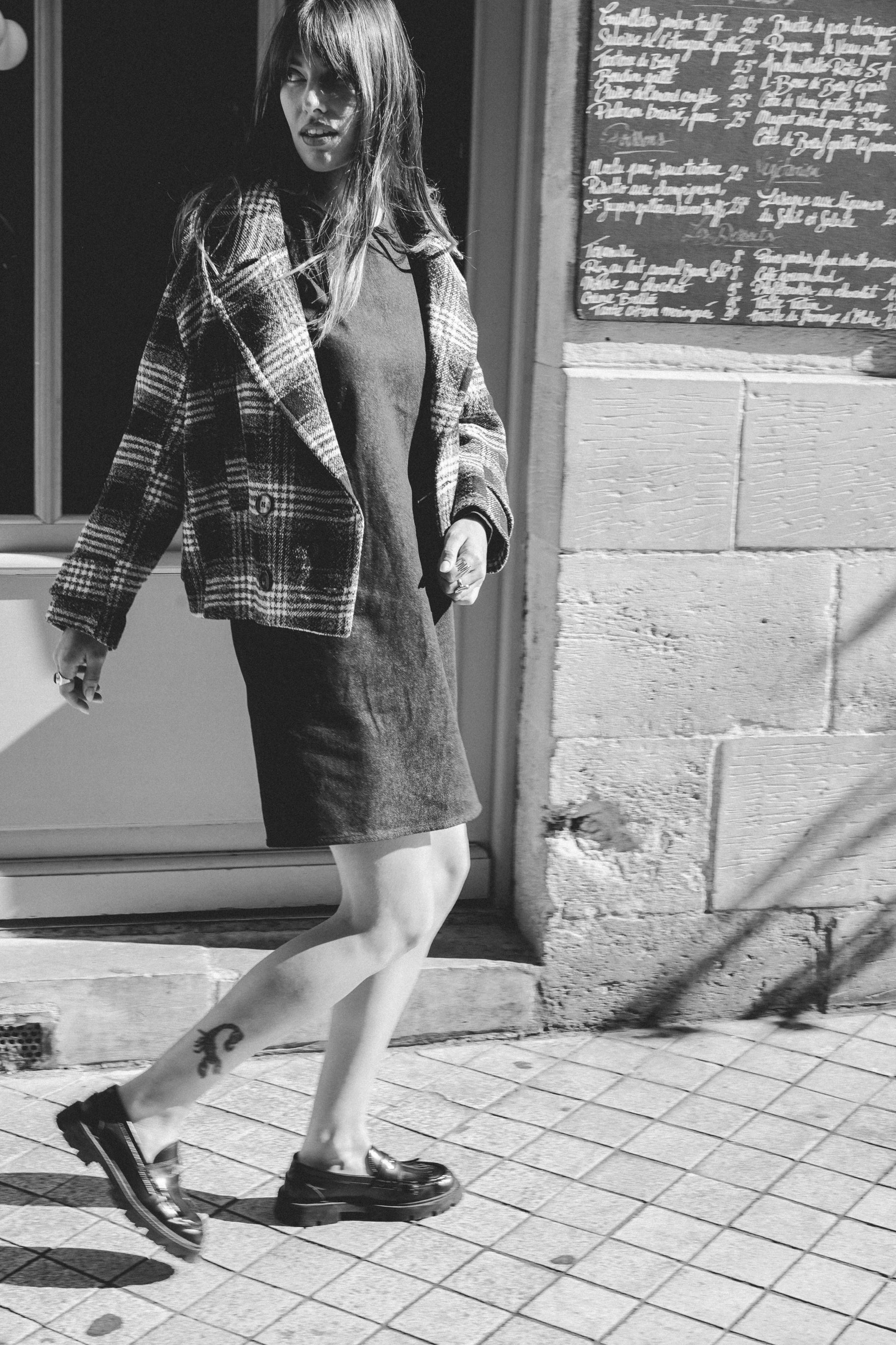 Avec son col tailleur, ses grands boutons ton sur ton et sa coupe courte légèrement oversize, le manteau Capucine Tartan réchauffe la silhouette tout en restant parfaitement élégant.