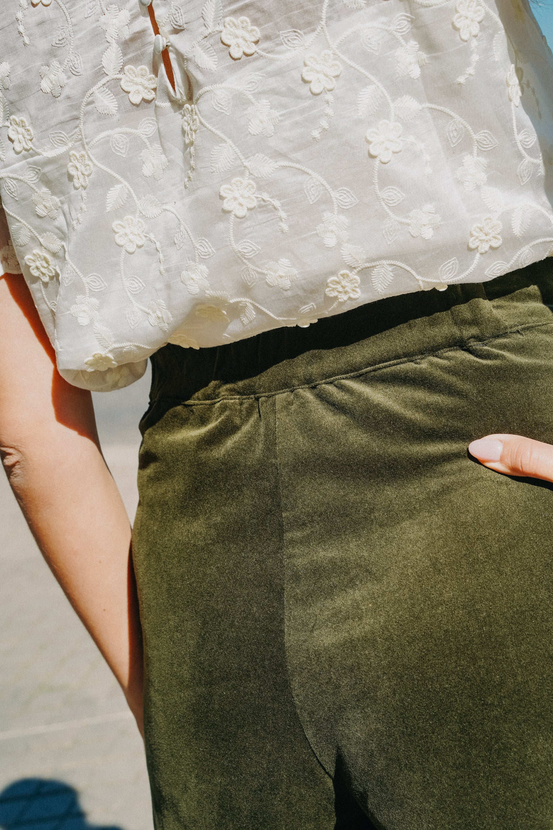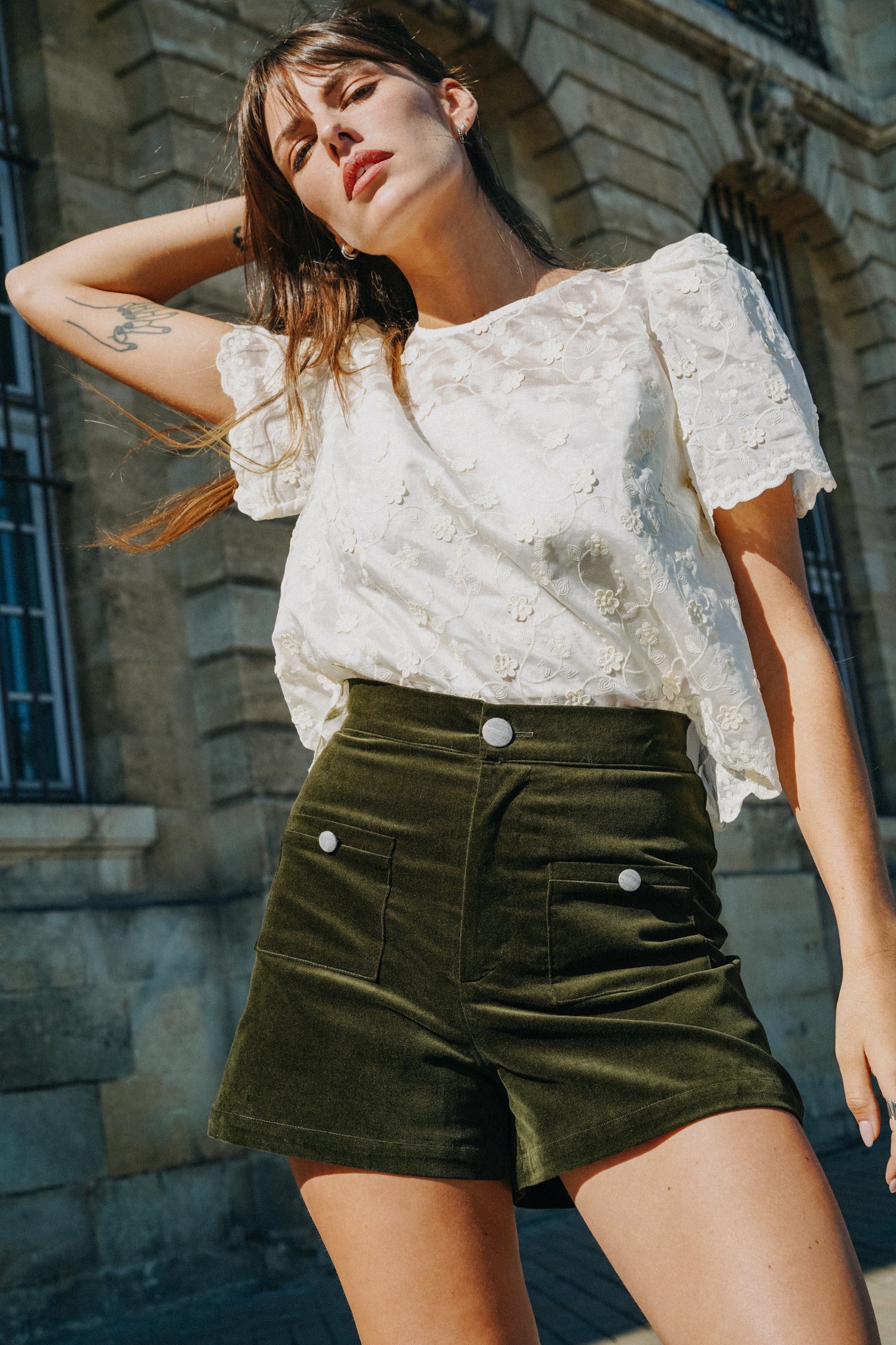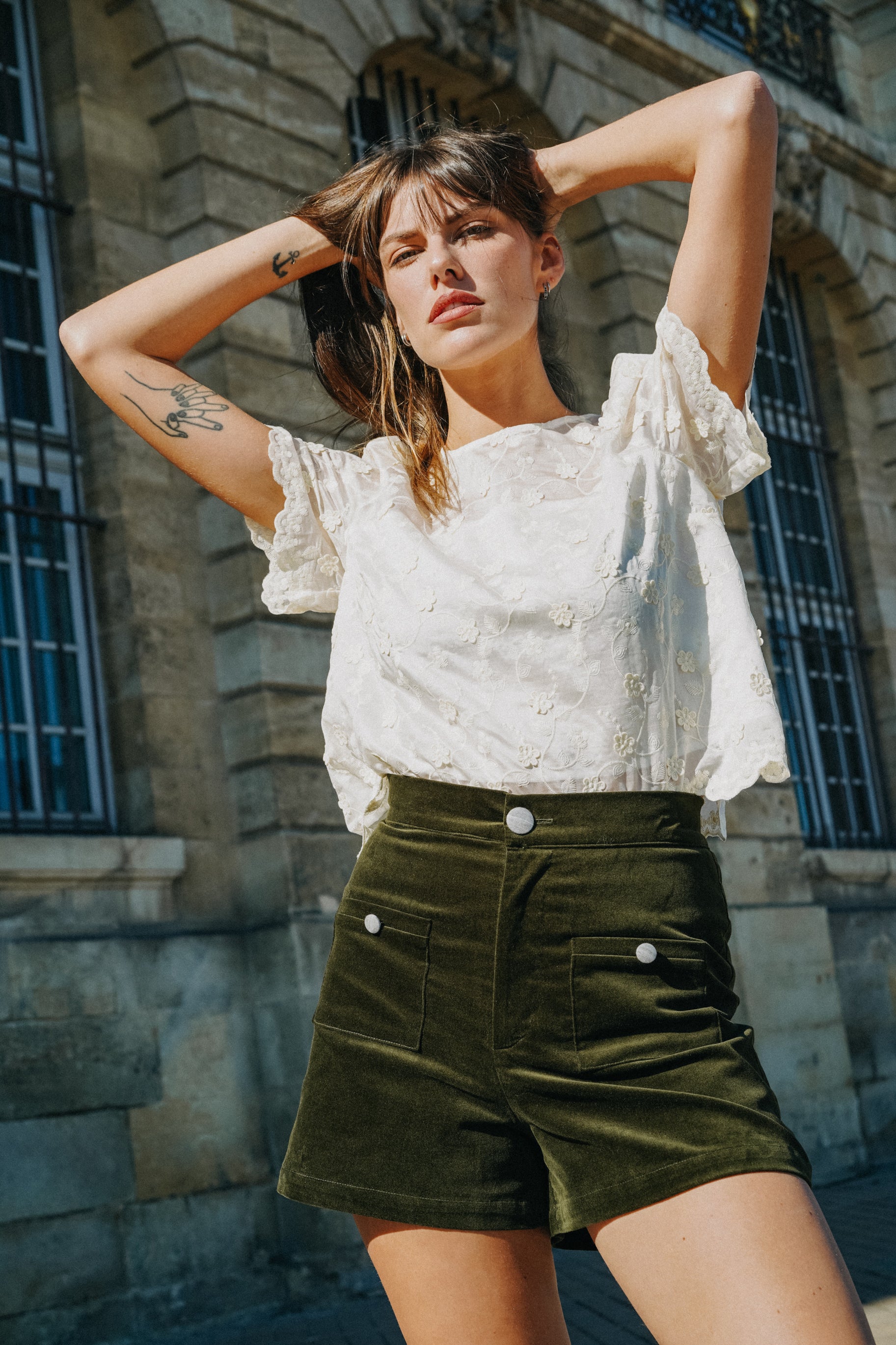 Un essentiel à porter aussi bien avec un tee-shirt imprimé pour un look casual, qu’avec une chemise ou une veste coordonnée comme notre Veste VICTORIA pour une allure plus habillée.